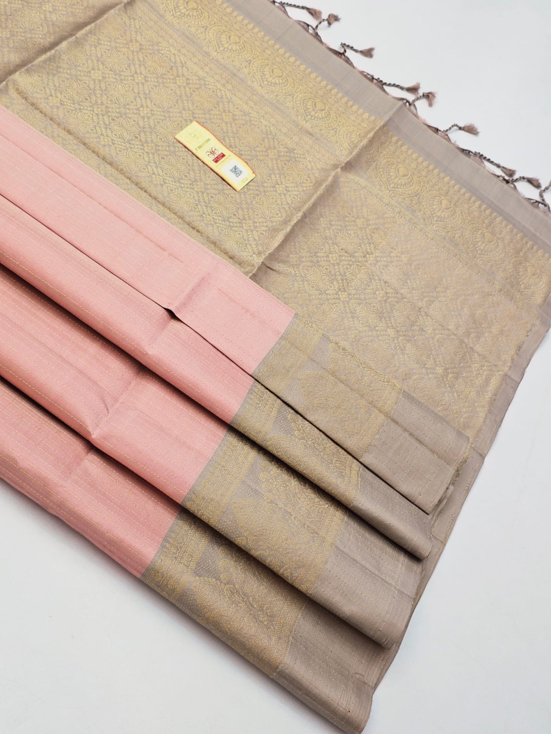 Pure Kanchipuram Silk Saree –Blush Pink & Taupe Blend with Gentle Golden Zari