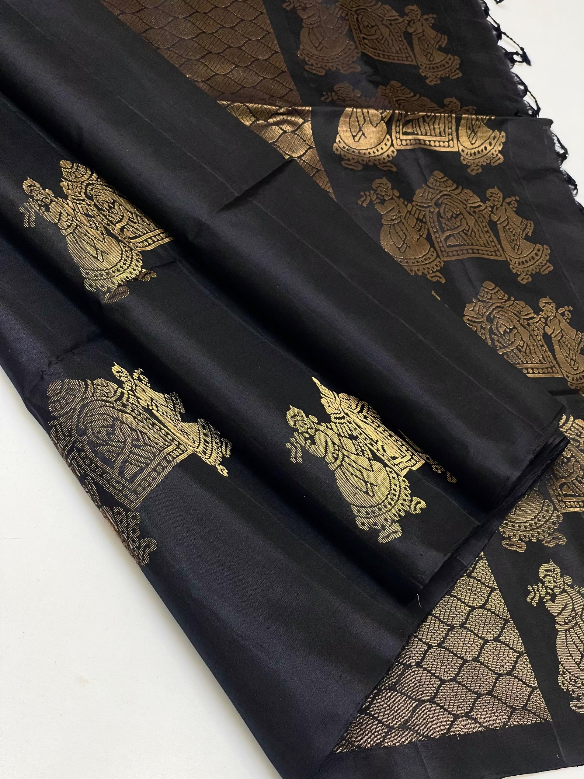 BV108 – Elegant Black & Cream Ikat-Inspired Saree