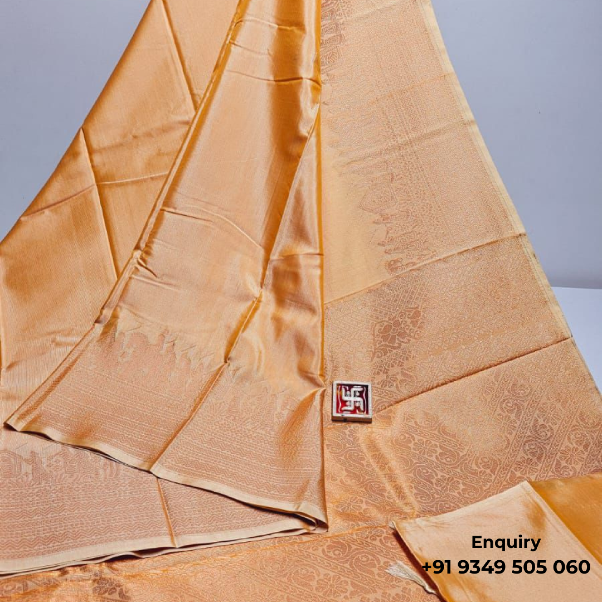 This golden yellow silk saree brings warmth and tradition together. Its gentle golden tone with fine motifs makes it ideal for poojas, muhurthams, and haldi ceremonies.