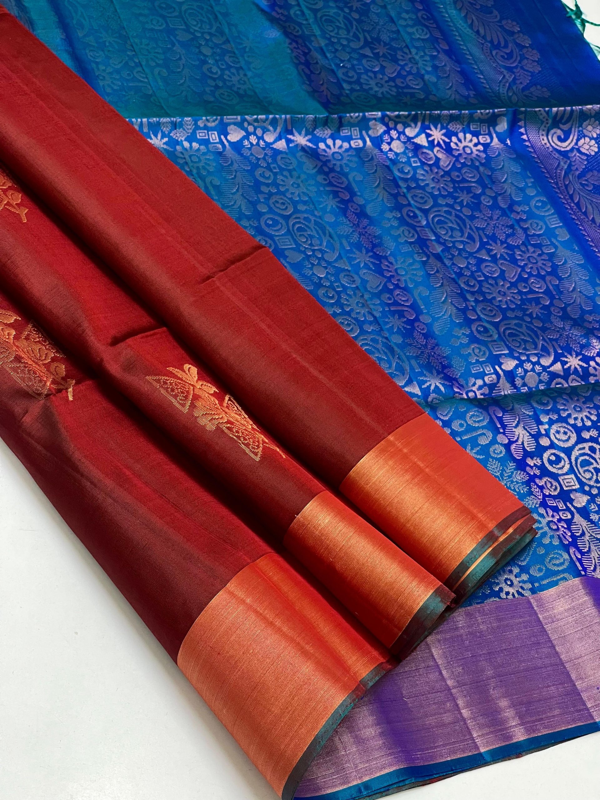Beige base combined with ocean-blue elephant and tribal motifs make this cotton saree ideal for comfort and ethnic expression.