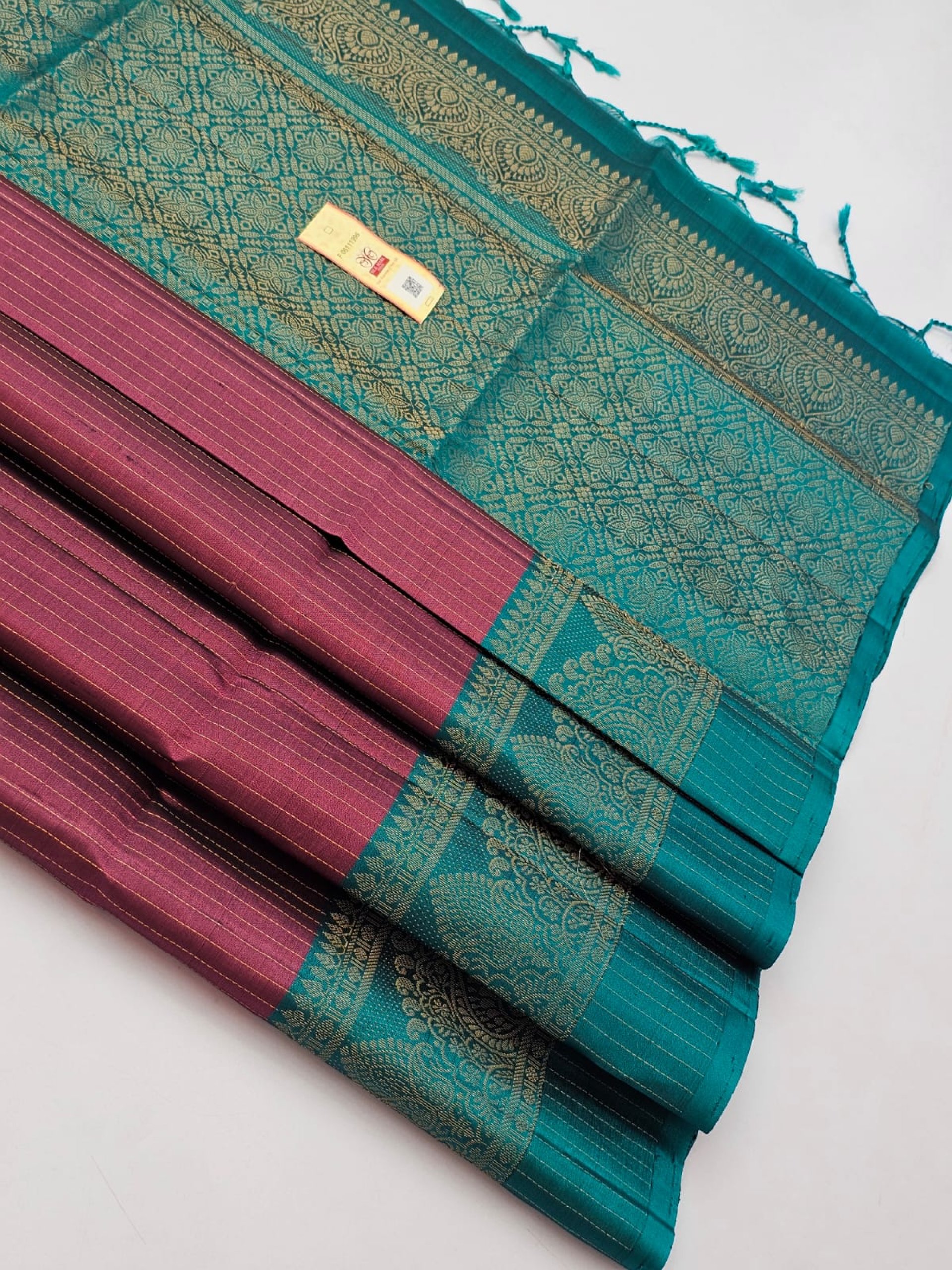 Pure Kanchipuram Silk Saree –Plum & Teal Green Dual Tone with Zari Weaving