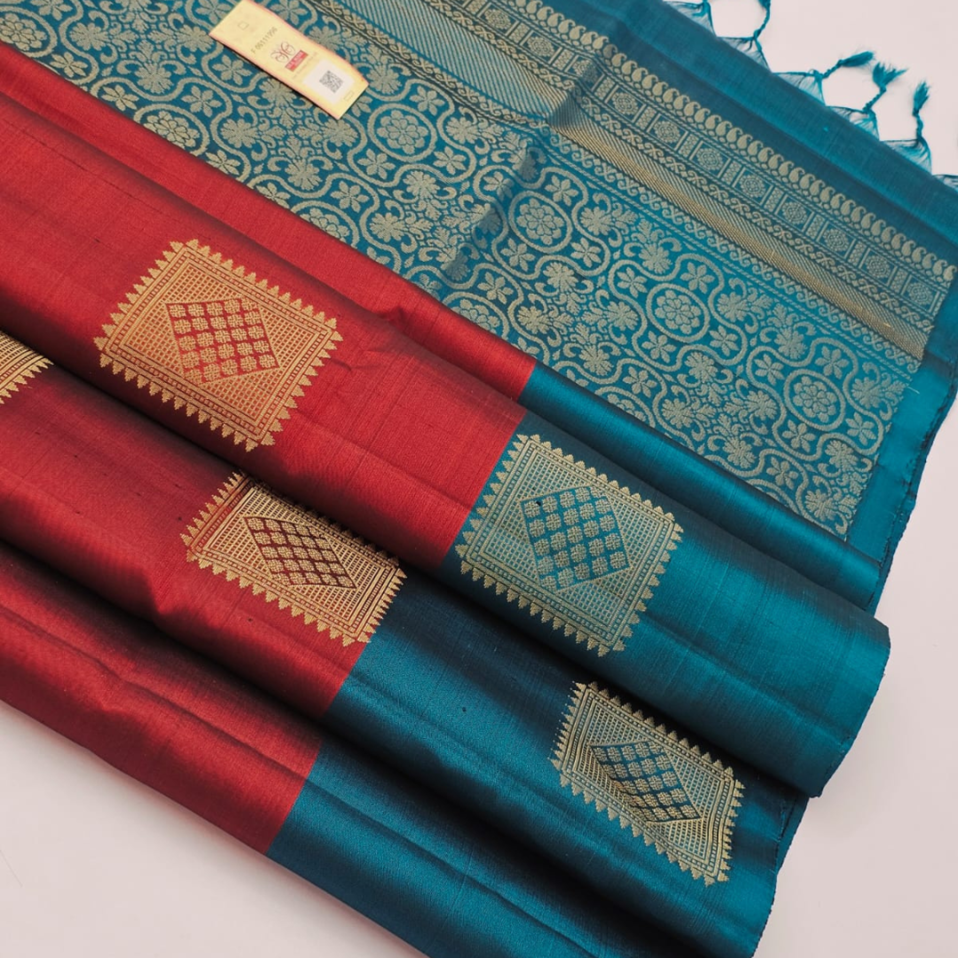 BV04 – Teal Blue & Red Kanjivaram Soft Silk Saree